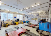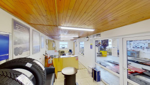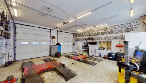 Zadná časť sa využíva v súčasnej dobe na pneuservisnú a autoservisnú činnosť 216 m2. Priestor nad garážami sa využíva ako sklad, taktiež o výmere 216 m2.