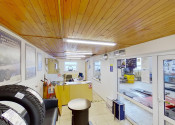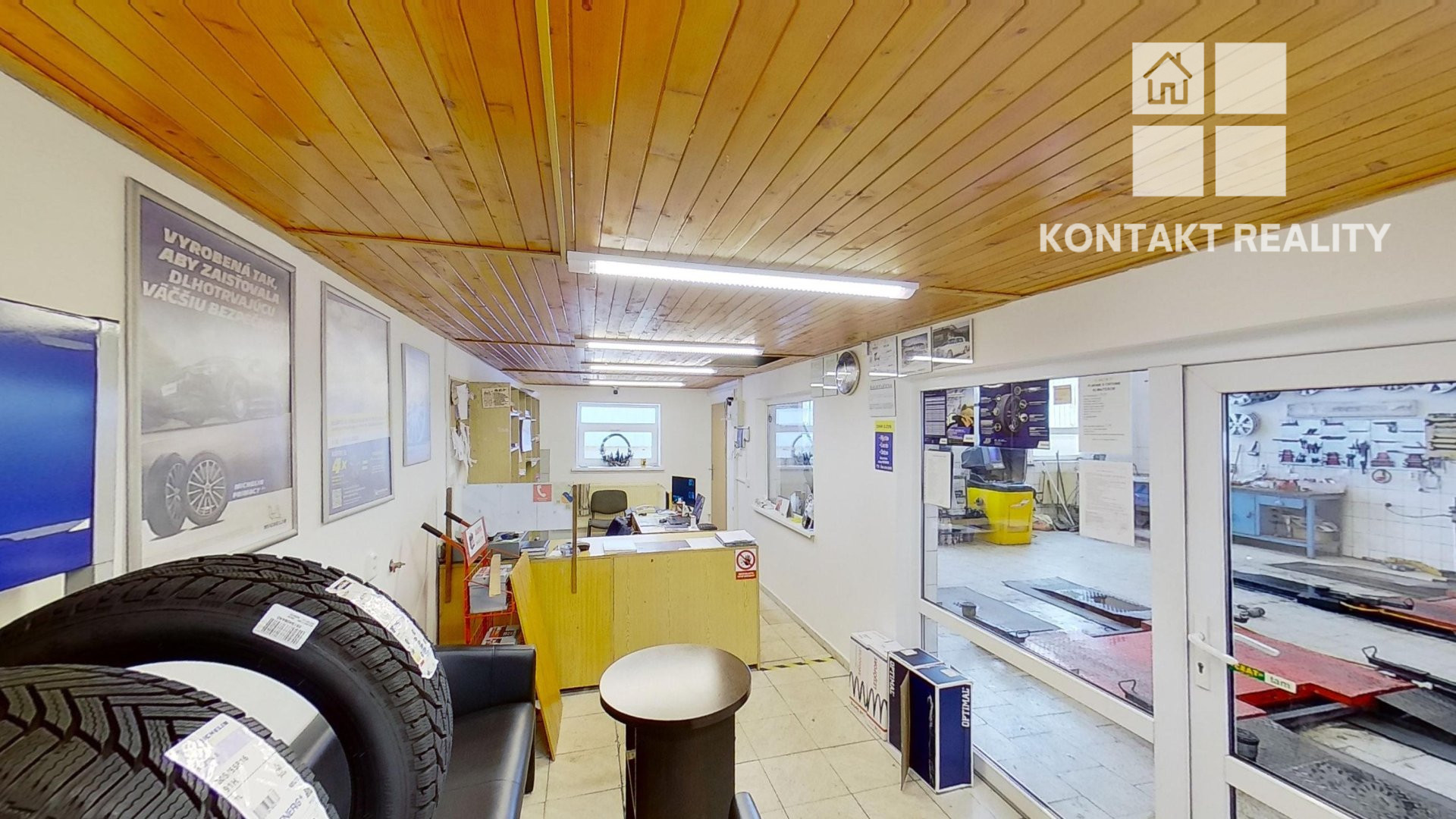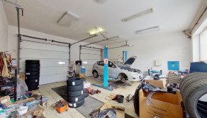 Zadná časť sa využíva v súčasnej dobe na pneuservisnú a autoservisnú činnosť 216 m2. Priestor nad garážami sa využíva ako sklad, taktiež o výmere 216 m2.