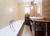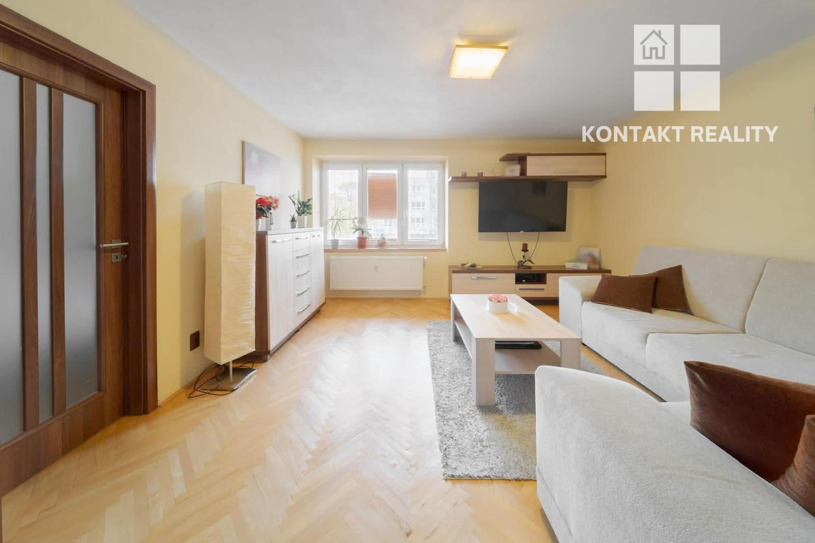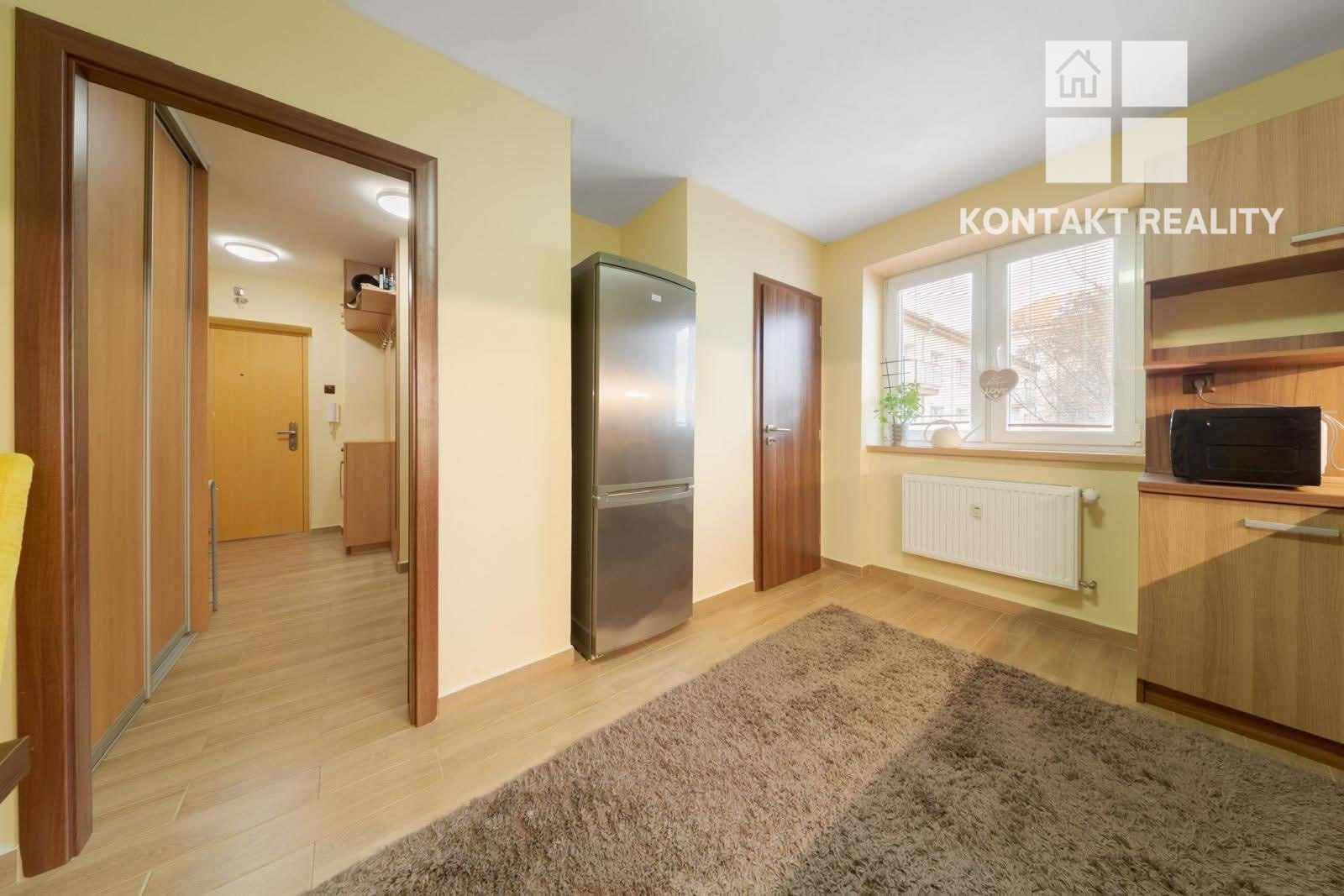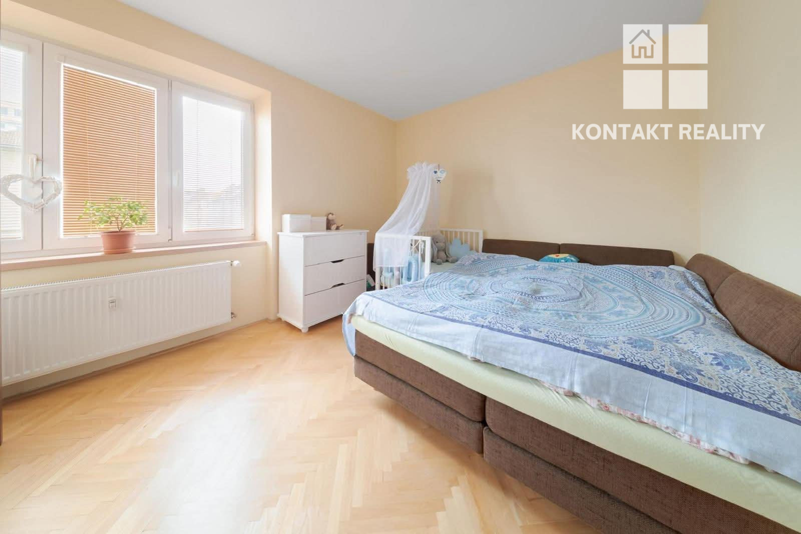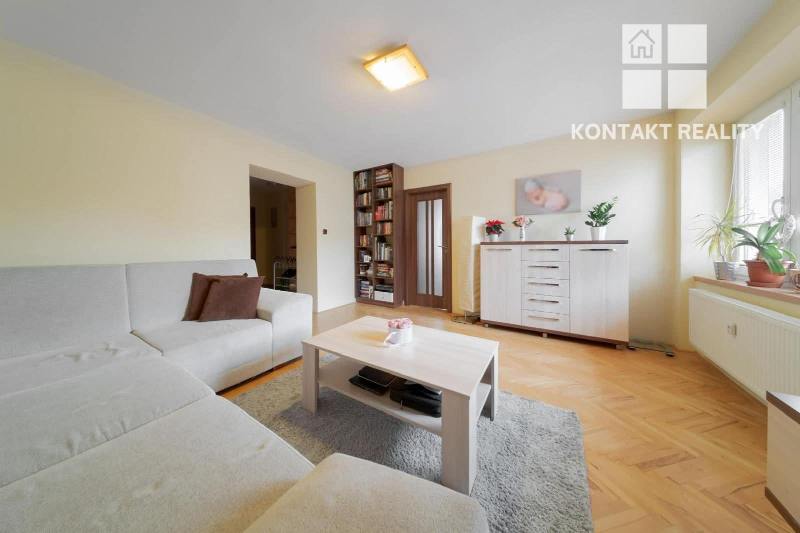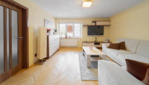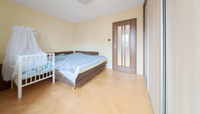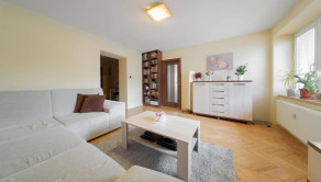 Priestranný byt disponuje dvoma izbami, pričom obývačka je prechodová.