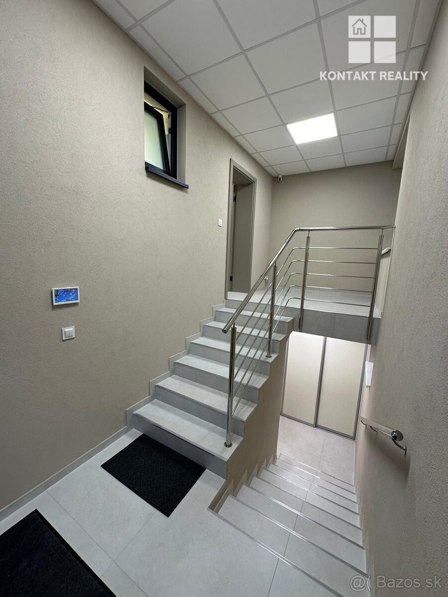 Veľkou výhodou je 10 parkovacích miest, alarm Paradox, videovrátnik Dauha, kamerový systém monitorujúci celé okolie domu, garáž, dvakrát kompletne vybavená kuchyňa a klimatizovaná spoločenská miestnosť s TV.