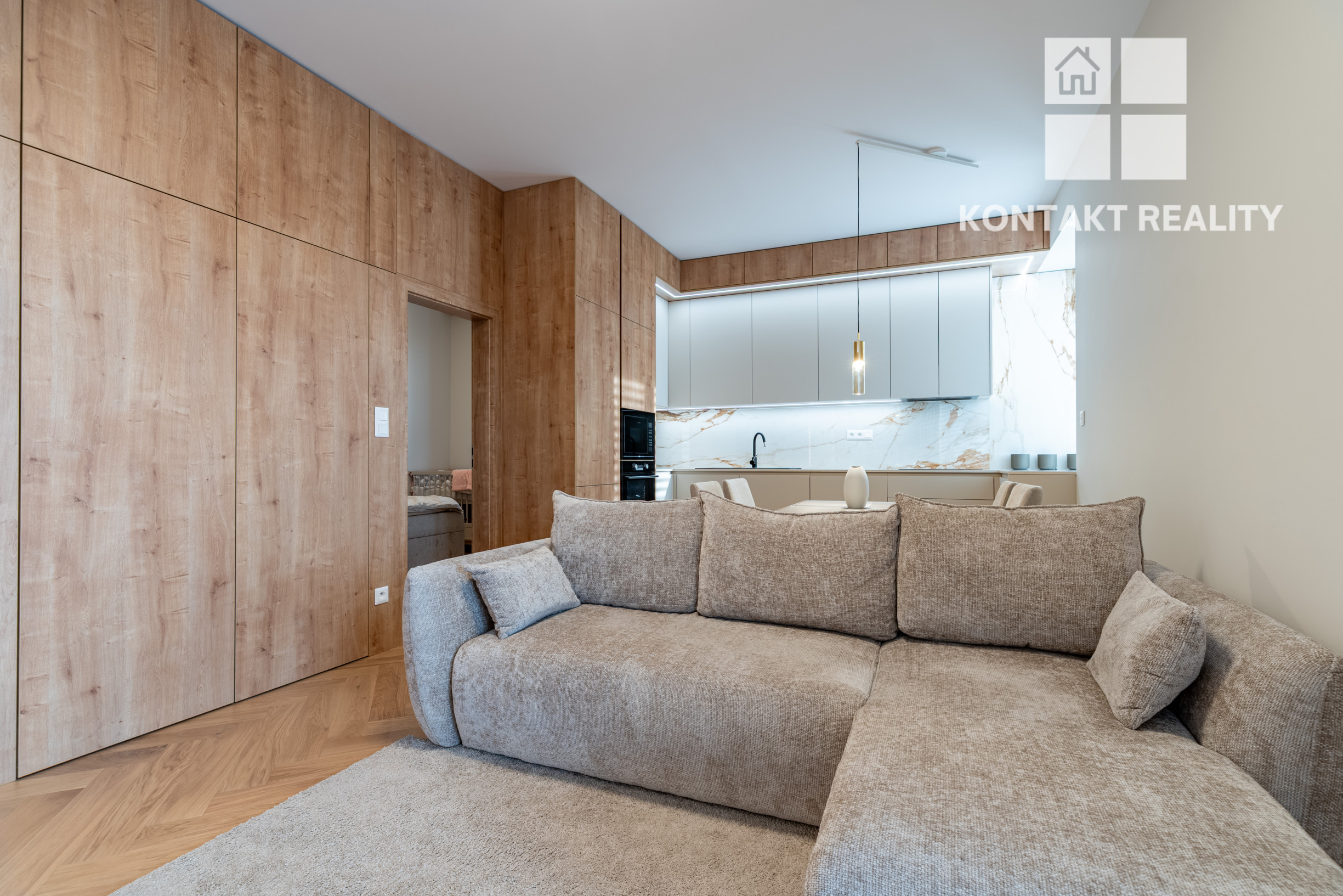 Vstupná chodba s dostatkom úložného priestoru, obývacia izba s kuchynským kútom, samostatná spálňa, kúpeľňa, WC